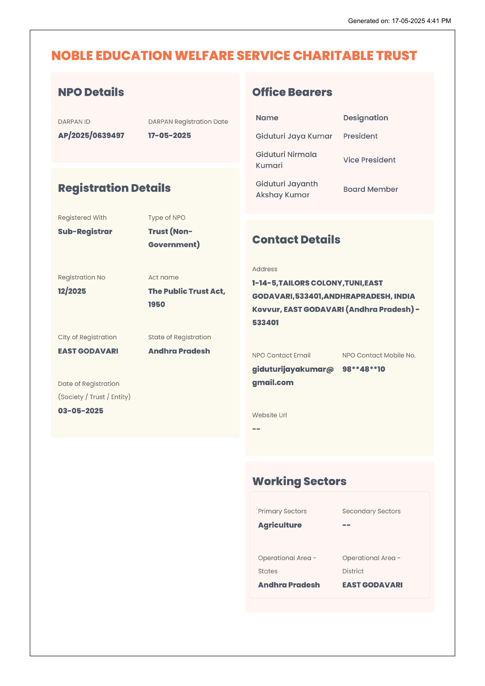 Our organization is led by a visionary leader, Sri. GIDUTURI JAYAKUMAR, whose unwavering commitment to our cause has been the driving force behind our success. Established in 2025, since then the organization has been expanding continuously in terms of social and Educational Development and Medical services, Food, and Sheltering for Orphans. It has worked for the promotion of sustainable, equitable, and participatory development, social welfare, and social justice through Programs for social work, the Establishment of Educational Technical and Medical Institutes supportive relief and education to the people, Health services, and other human service through social research and dissemination of socially relevant knowledge, social intervention through training and field action, contribution to social and welfare policy and program at State, National and International levels, over the years, The organization has among others (NGOs, Trusts) thrusts made A significant contribution to planning, action strategies, and Human Resource Development in several areas, ranging from sustainable rural and urban development to education, health, Agriculture, and Human Rights, in all case, the focus has been on the disadvantaged and marginalized section of societies, such as women, children and tribal. At NEWS CHARITY , we envision a world where education is a fundamental right for all. Since our inception in 2025, we have been dedicated to breaking down barriers to education, especially for marginalized and disadvantaged communities. Through our school-building initiatives, scholarship programs, and teacher training, we are working towards creating a brighter future for children and youth, empowering them with the knowledge and skills they need to succeed.